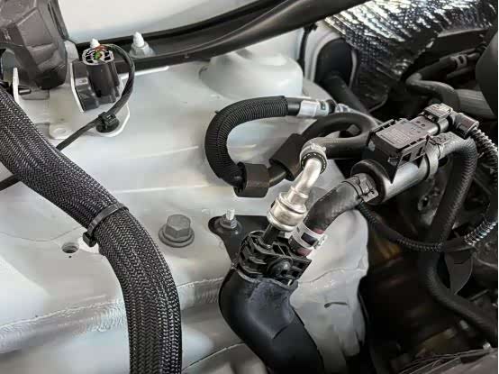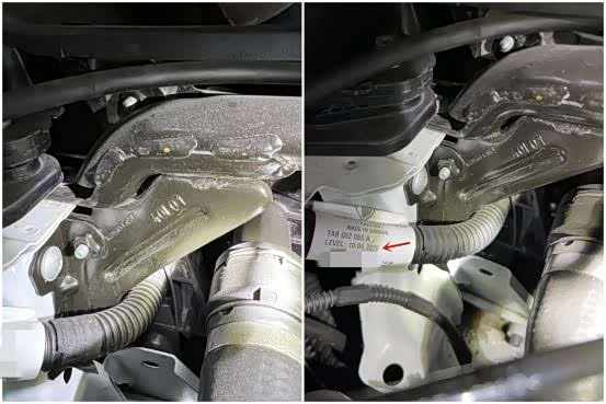 减震器座钣金胶正常,固定螺丝无拆卸,防火墙没有动过的痕迹,隔音棉崭新。