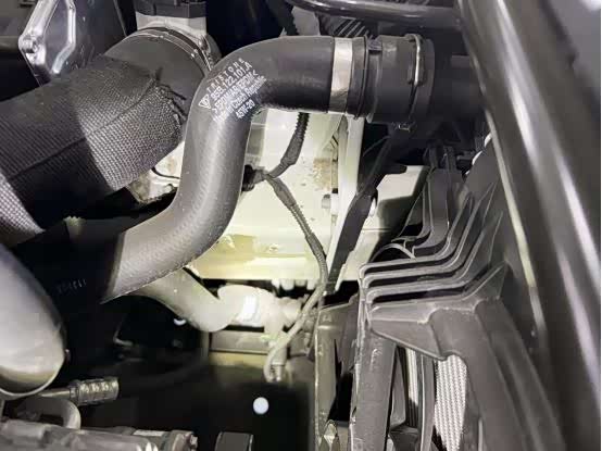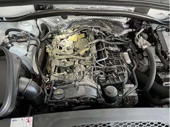 发动机舱很干净,有轻微的灰尘,各管线清晰,都贴有原车出厂时的塑料贴。