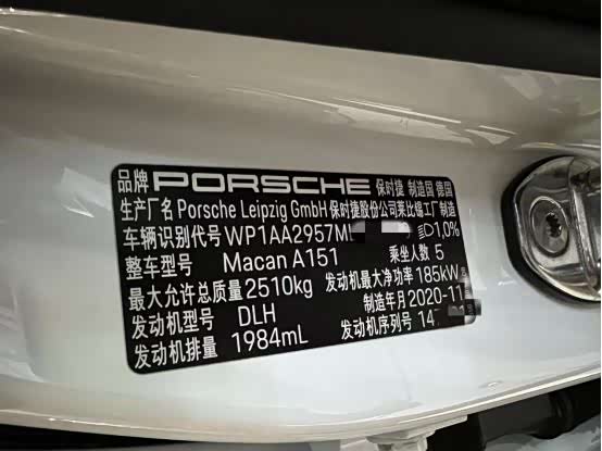 保时捷莱比锡工厂,德国制造,20年11月出厂。
