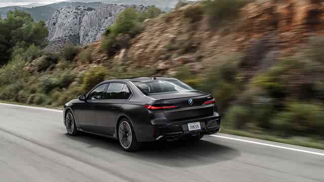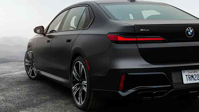 新7系的尾部设计似曾相识,同样的风格宝马早已经是在iX上运用了,摒弃了现在烂大街式的贯穿式尾灯,从而改成了长条式的3D立体悬浮式LED尾灯,灯光关闭时尾灯会与周围的黑色装饰融为一体,点亮之后极致的红色,精细度和高级感依旧是没话说。其余地方,秉承着极简的设计理念,宝马并没有采用过多复杂的元素,同样是厚重的感觉,但燃油版的M套件版本却是在后包围的处理更显立体化,从而来安置排气来凸显整车的运动气息。