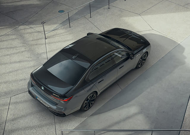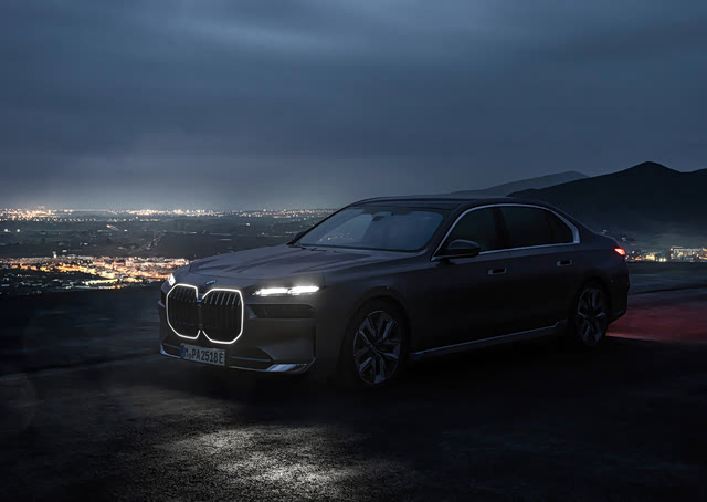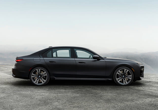 而且在侧面造型的处理上,新7系摒弃了老款车型上那流畅动感的设计,反而变得更加厚重,一条极为平直的腰线从前贯穿到后,并且被放在了高位的位置,除此之外车身有着大量的留白,值得一提的是,可能是新一代的CLAR平台能够同时兼容燃油和纯电两种车型,所以新7系的侧面明显更厚,以用来容纳i7底部电池组。