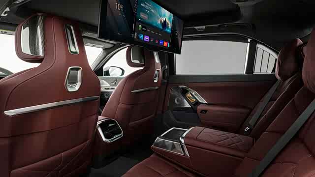 当然,新车最大的大招还是在于它那块可以从头顶翻折下来的31.3英寸8K影院大屏,其长宽比为32:9,来自于三星,近乎横跨整个后排的屏幕相信会令每一个坐在后排的乘客都倍感惊叹。要知道,这样的一块屏幕从来没有出现在轿车之上,以往仅仅只是在MPV或者SUV这样的大空间车型上存在过,但在质素和尺寸基本上很难达到新7系这个水平。大屏加持,当然要有足够的影音资源,其将会提供5G网络连接、高清网络摄像头、128G内置硬盘、蓝牙耳机和智能遥控器等多项配置,中规版车型甚至还会使用华为开发的本地化影视库,不过似乎,这项配置是需要选装的,但无疑,作为新7系最大的卖点,这必需选装。