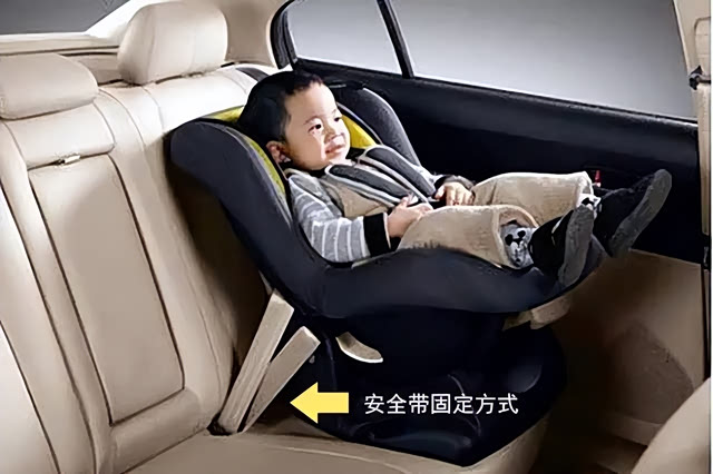 有些车没有安全座椅专用接口,在这种情况下,就只能使用车上的安全带进行固定了。