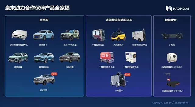 除了低速物流车,毫末智行旗下产品还覆盖了高速、城市道路、停车场等场景,为乘用车提供辅助自动驾驶功能。乘用车方面,毫末智行辅助驾驶用户行驶里程已经突破700万公里。
