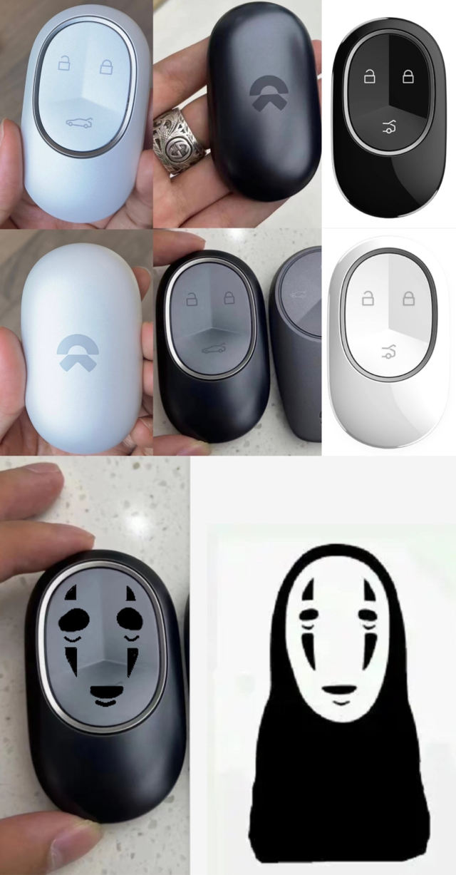 哦对了,黑白钥匙相比最初的光面版本已经升级成了磨砂面,质感直线提升,个人认为还是很漂亮的,不过无脸男撞脸了哈哈: