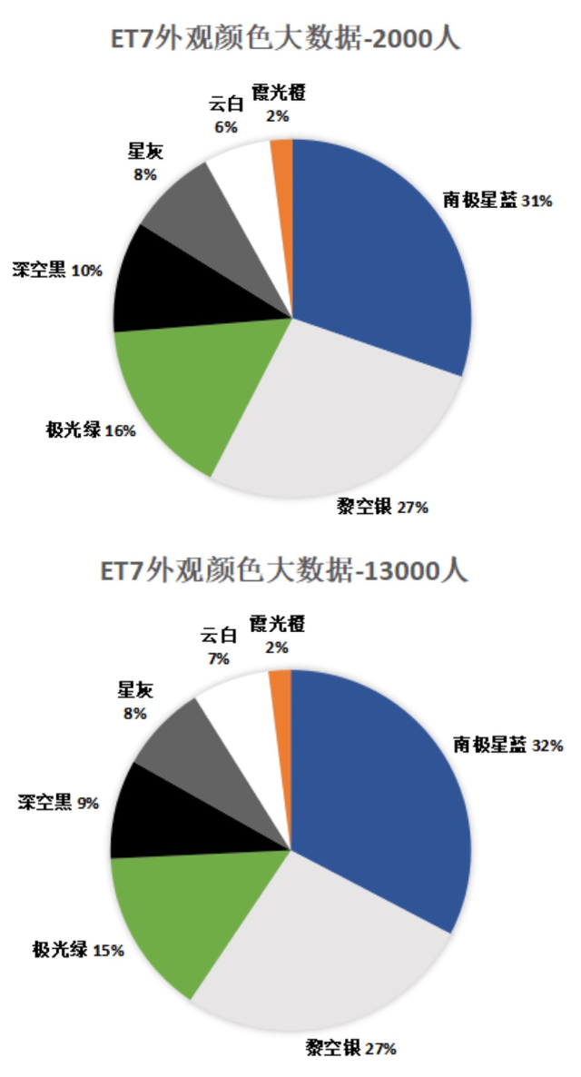 根据数据,我们发现,南极星蓝不愧是官方宣传最久的颜色,优雅高级,选择的人最多。