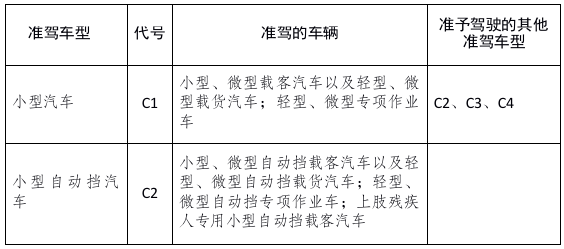 C2准驾车型为:C2(小型、微型自动挡载客汽车以及轻型、微型自动挡载货汽车;轻型、微型自动挡专项作业车;上肢残疾人专用小型自动挡载客汽车)