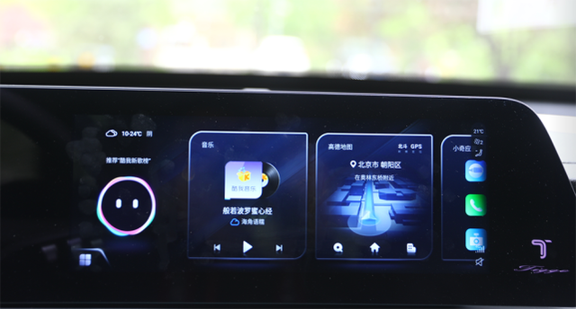 比亚迪宋Pro中控可旋转悬浮屏尺寸增加至15.6英寸,内置基于Di平台打造的车机系统操作起来的流畅度非常棒,左右分屏功能更便于同时控制不同的App。