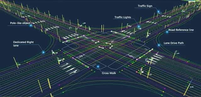 除此之外,在以往的地图中,导航只会告诉你前方红绿灯请减速慢行,高精地图可以通过路口的红绿灯状态、交通流量、路网变化情况等数据信息的回传,在云端服务平台的分析和协助下,实现车道级的智能化路径规划和决策。