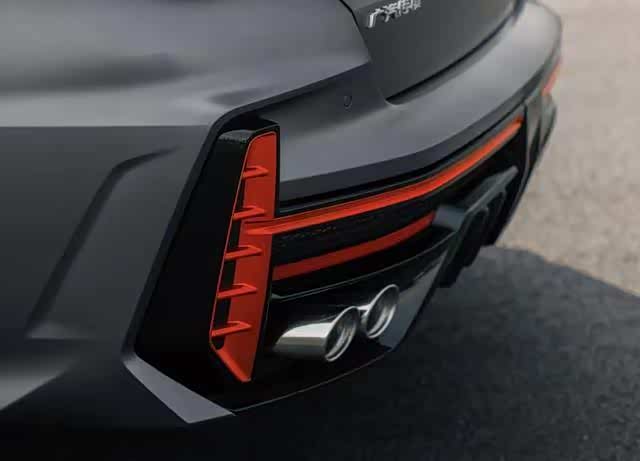 首先在外观方面,这款车整体给人的感觉比较的运动,前脸采用的是上下分层的格栅合适,上方的格栅设计比较的窄,内部进行了熏黑的处理,中间镶嵌着品牌的logo比较的醒目,以彰显身份,下方的格栅面积比较大的,内部加以很多点阵式结构元素进行点缀,同时加有贯穿式的橙色饰条,比较的亮眼,瞬间拉伸了整个前脸的横向视觉宽度,在车身侧面,整个车身腰线比较的流畅,下方配备的是多辐式造型设计的轮毂,增加了车身侧面的运动感,在车身尺寸方面,这款车的长宽高分别为4700毫米,1850毫米,1432毫米,轴距为2736毫米,来到车身尾部,整个车身尾部设计的比较的饱满,尾灯采用的是不规则造型设计,点亮之后有不错的辨识度,排气管采用的是双边四出的布局设计,进一步增加了车身造型的运动感。