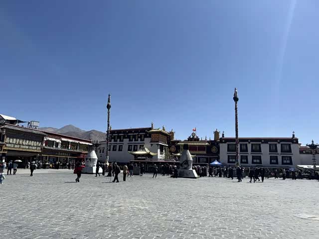 拉萨除布达拉宫外最有名的大昭寺,周边很多顺时针转圈叩拜的藏族信仰者,大昭寺中最著名的是供奉着唐代文成公主陪嫁的,从长安带过来的释迦牟尼在世时塑造的12岁等身像,因此在佛教中拥有至高无上的地位。