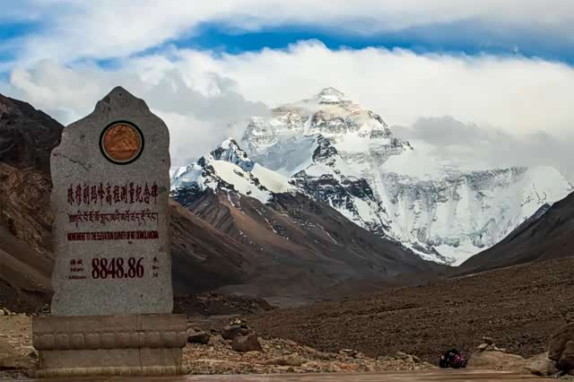 珠穆朗玛峰国家公园打卡,这是我们这一次去过门票最贵的景区,两人一车共花费720元,看不看得到珠峰还要看天气情况(左前轮的反光条牺牲了)。