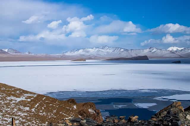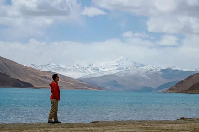 山南最著名的湖泊,普莫雍错,因为需要边防证,来这边的人很少,4月份的湖面结冰都还没融化。
