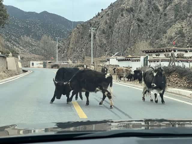 藏区的牦牛特别多,几乎天天都会遇到牦牛挡路的情况,所以在牦牛群附近开车要很小心,千万不能急,不要按喇叭,网传撞到牦牛可能要坐火车回家啦,哈哈哈。