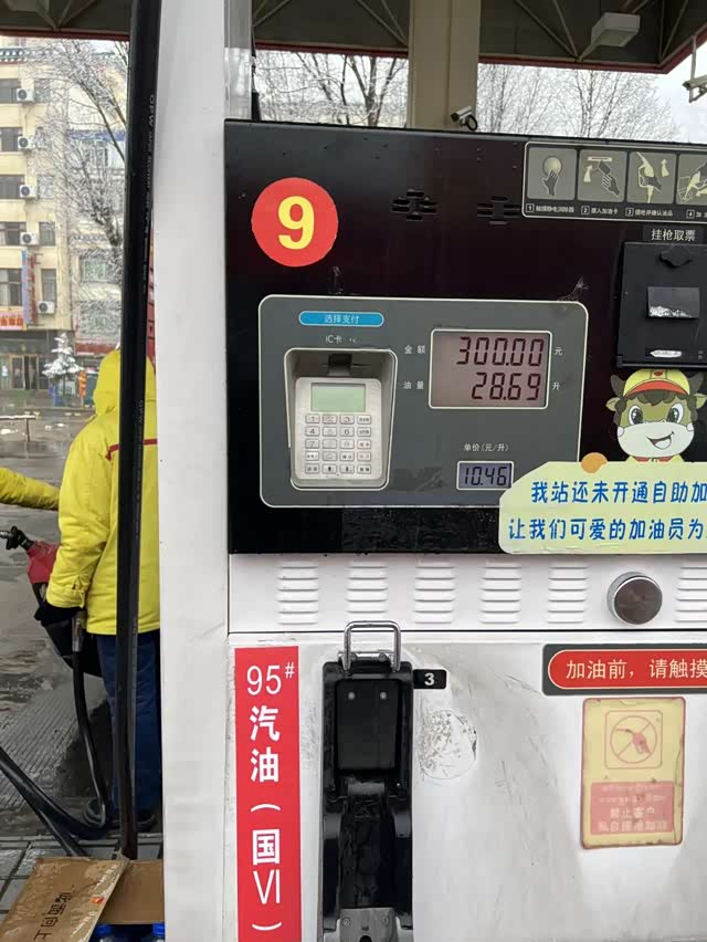 到西藏后第一次加油。要先登记三证“身份证、驾驶证、行驶证”才能加油,油价高得离谱,95号汽油要10.46元/L,跟海南差不多,比内陆城市高1-2元/升。