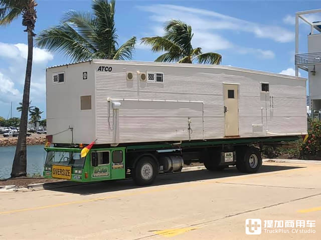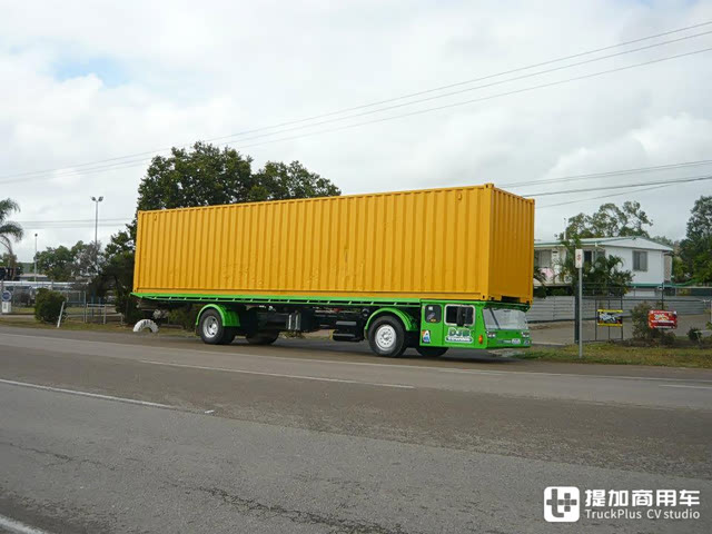 车辆的长度为12米左右,正好能塞下一个ISO标准的40尺集装箱。车辆上预留了安装孔,对接起来也很方便。除了澳大利亚,也有许多其他的地方在用这种卡车,比如欧洲KAMAG公司就专门从事于这类卡车的改装。