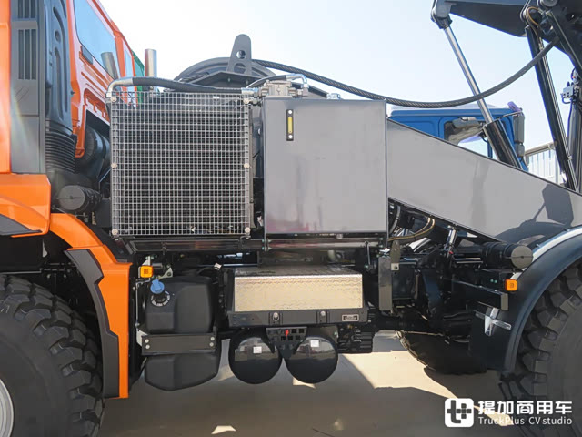 车辆所需的液压设备放在了底盘侧面。毕竟上装空间极大,设备的安装也就更加随心一点。