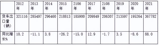 根据海关及中汽协数据,2018年我国卡车累计出口206307辆,同比下降1.7%;2019年累计出口213597辆,同比增长3.5%;2020年累计出口195264辆,同比下降8.6%;2021年累计出口367782辆,同比增长88%。