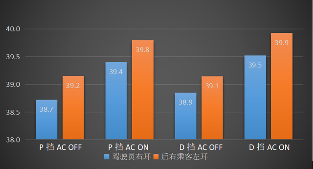怠速车内噪声总级1.开空调工况下,噪声水平低于40dB(A),主观评价车内乘员不会产生不适感。此外,开空调与关空调工况噪声差值不足1dB(A),主观感受变化不明显。