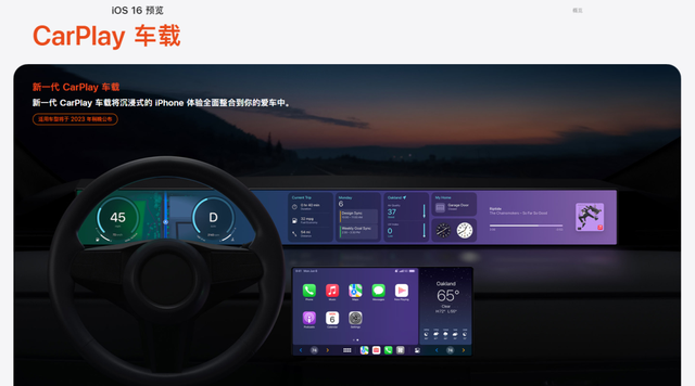 虽然苹果在WWDC22发布会上放出了下面这张图,但在随后的官网页面更新中,表明了“适用车型将于2023年稍晚公布”,所以你最快也得等到明年年底才能在某一品牌某些车款中用上新一代CarPlay。也就是说,目前你能看到的只是一种统一解决方案,相信各个汽车品牌会根据自家情况作适配的。