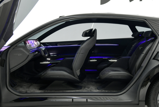 该车方向盘采用U型设计,具备线控转向技术,支持自动驾驶状态下方向盘的伸缩隐形和可变转向比。ROBO-01取消门把手、换挡杆、左右拨杆等90%物理操作,驾驶员和乘客可通过语音交互控制车辆所有功能,实现可见即可说、可触即可控。该车座椅设计以宇宙飞船为灵感,极具科幻感,采用轻质碳结构和透气座椅材料,还包括一个可伸缩的天鹅颈降噪音频头枕。
