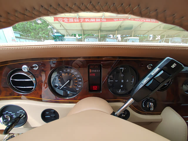 进入车内,第一感觉就是:这内饰保养得太好了,有种“古色古香”的味道,完全不像一台二十多年前的车。试想一下,若是一台1998年的普通家用车,大概率会跑了30万公里以上,现在内饰会是啥样?估计是战损级别了。这台银刺的内饰是由来自英国柴郡克鲁工厂的匠人们手工打磨,用料主要是顶级真皮+高端木材,脚垫都是羊毛的,奢华的感觉并未随着岁月的变迁而流逝。