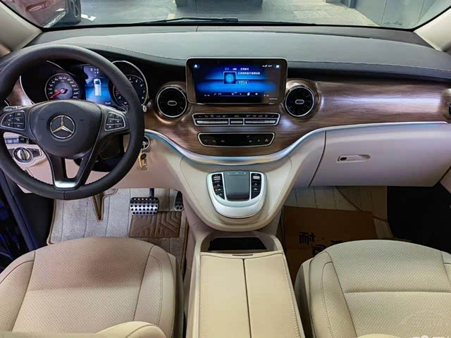 奔驰对车型内饰的豪华感营造一直备受好评,而V级就是其中一个代表作。其内饰中控区域应用了贯穿两端的大面积木纹饰板,下侧还有着流畅饰条进行点缀,加上大量运用的软性材质,质感营造依旧是独一档的存在。不过就是悬浮式中控屏看着略显小气一些,液晶仪表盘也只有5.5英寸。