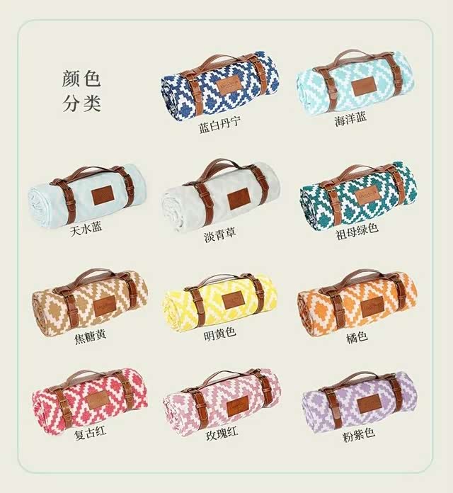 野餐垫现在对于很多小姐姐来说,就是拍照神器,所以选择野餐垫,一定是功能和颜值并存的,什么流苏款啊,复古花纹款。