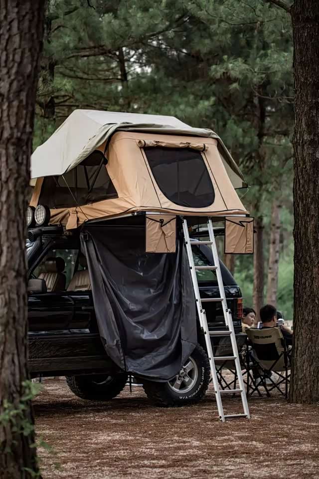 天幕遮阳面积比较大,可以在下面支张桌子三五个人喝喝咖啡聊聊天也是不错的。天幕也有很多款式可以选择,天幕形状分为方形、菱形、蝶形以及其他异形。