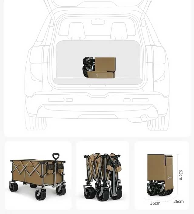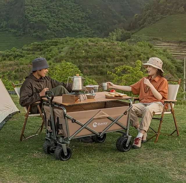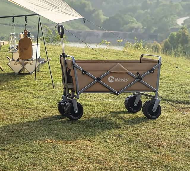 一辆户外折叠营地车也是刚需,露营装备从车上拿下来,如果要肩扛手提实在太累。