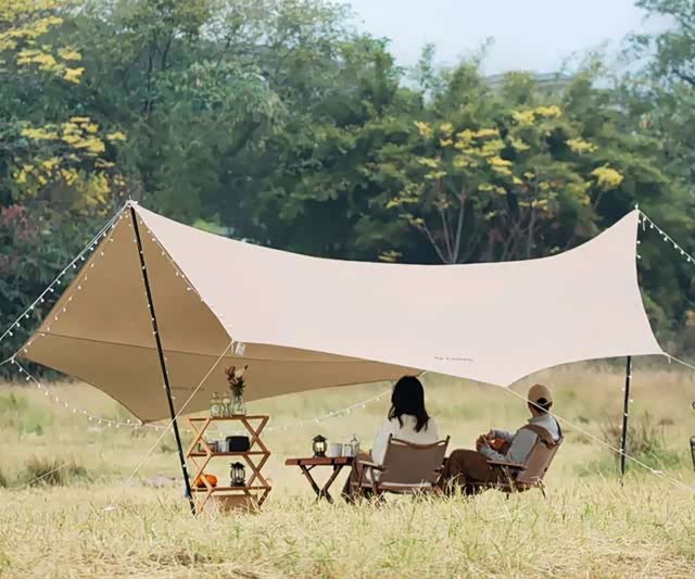 蝶形天幕以六角和八角的方形天幕为主,比较美观而且还可以有多变的造型,同时抗风能力也更强。而异型天幕搭建起来有些难度而且收纳起来的体积会比较大,对于城市露营的人来说,不太实用。城市露营还是选择方形天幕比较合适。