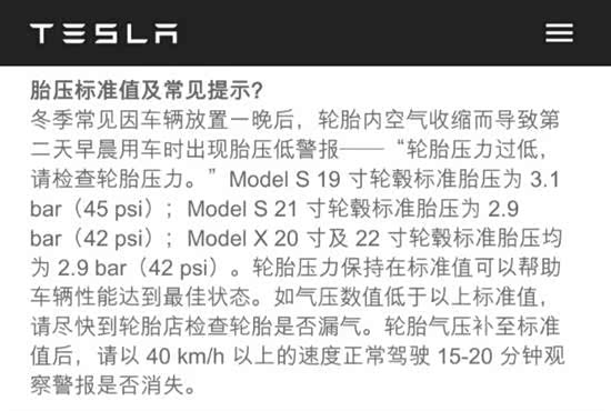 那什么类型的汽车2.5bar胎压不适用呢?答案就是:纯电动汽车。众所周知,由于纯电动汽车会携带一块密度超高的电池组,而电池本身重量非常大,所以纯电动汽车往往要比燃油车重上几百公斤,这相当于默认状态纯电动汽车就拉满了一车人,所以,给纯电动汽车充气适当的提高一些胎压比较好。例如: 特斯拉Model S和Model X厂家建议标准胎压为2.9bar,甚至根据轮毂尺寸不同,建议胎压打到3.1bar。所以,纯电动车的胎压相比于燃油车一般普遍都比较高,不过也还是有一些重量和燃油车差价不多的纯电动车建议胎压为2.5bar。
