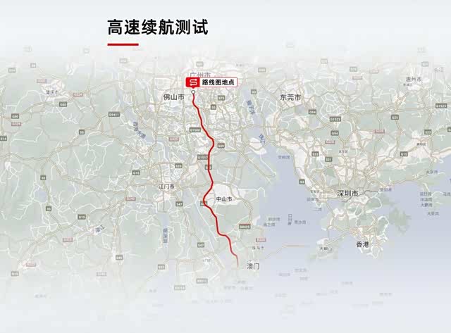 高速测试路线为广珠西线广州-珠海路段,单程约130公里。大部分路段限速为120km/h,小部分路段限速100km/h。该线路日常车流量适中,整体行驶节奏较为稳定,基本模拟了正常高速道路行驶工况。