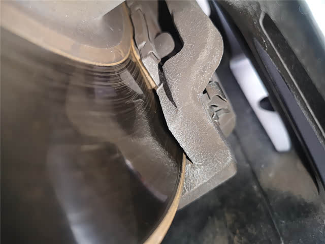 全车刹车片都比较薄了,到了更换的时间了。如果不是剧烈驾驶的话,马自达的刹车片更换周期是10万公里左右,但是车辆现在表显9万公里,结合漏油,刹车片薄及内饰磨损情况,凹凸曼我判断存在调表情况。