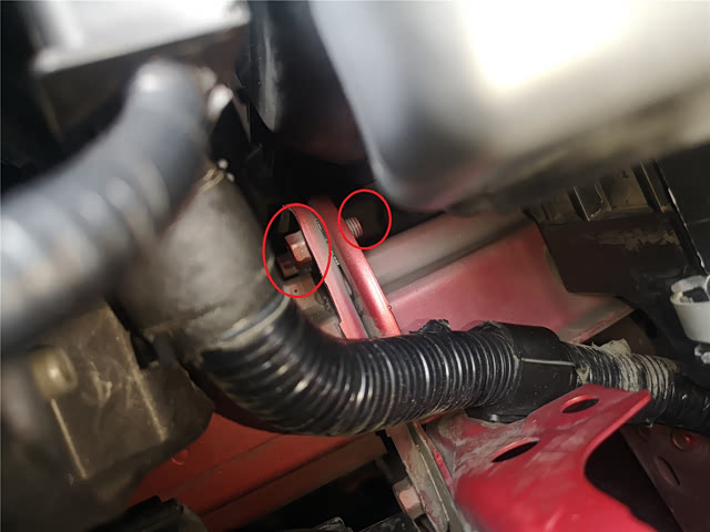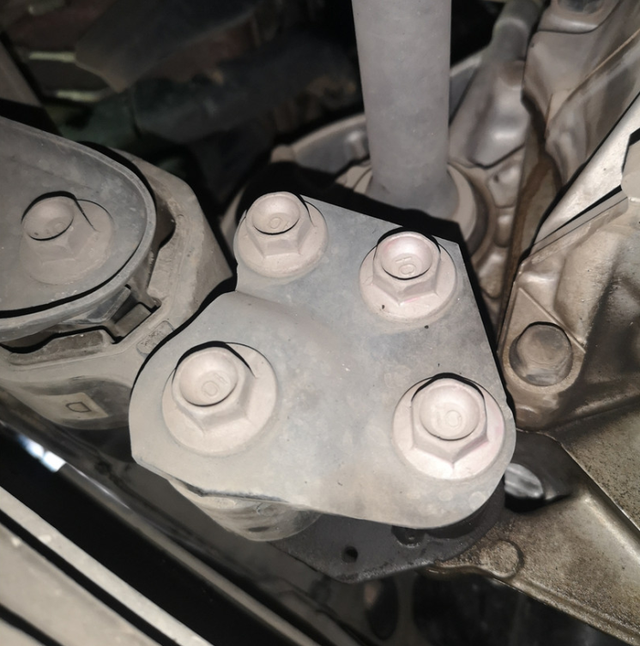 因为前保险杠及大灯有拆装,我们就需要看一下前防撞梁跟纵梁是否有修复情况,防撞梁的螺钉是没有拆卸拧动痕迹的,所以事故应该只是顶到了前杠。