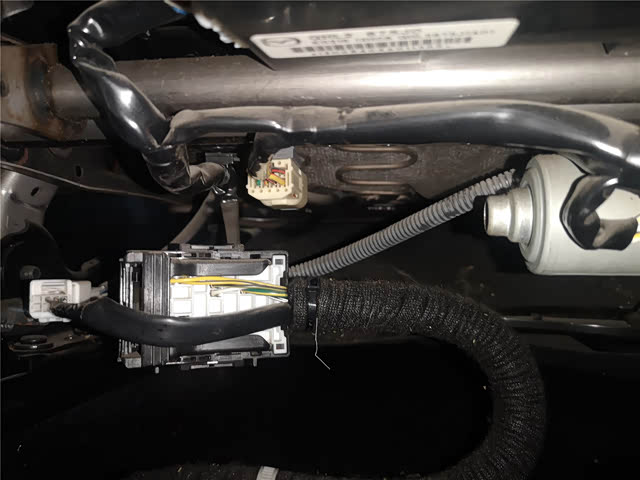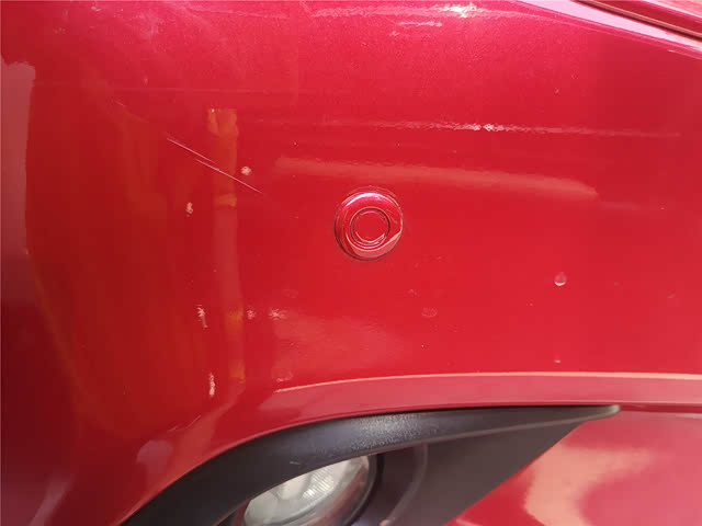 前杠部分检查,发现前杠有喷漆,而且雷达探头有明显位移的现象,应该是前杠拆装喷漆,后期没有安装到位。