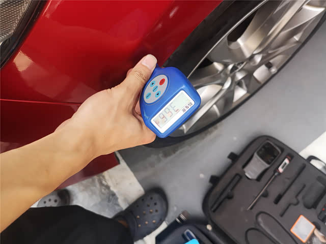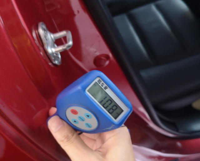 初步绕车检查,发现外观油漆光泽度还是不错的,就是存在比较多的划痕,不仔细看倒是看不出,至于漆面有没有翻新,我们还是要检测过后才清楚。
