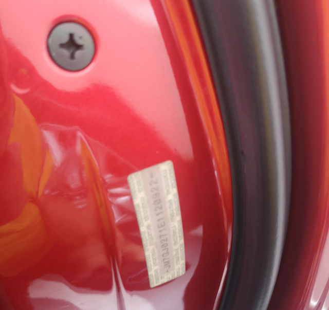为啥是调整不是拆装更换呢?因为右后门上的原厂安装条码都还在,并且没有二次粘贴痕迹,这里真的要夸赞一下进口车型的做工严谨,每个门上都有跟车架号相对应的贴条,而国产阿特兹上面是找不到这些东西的。