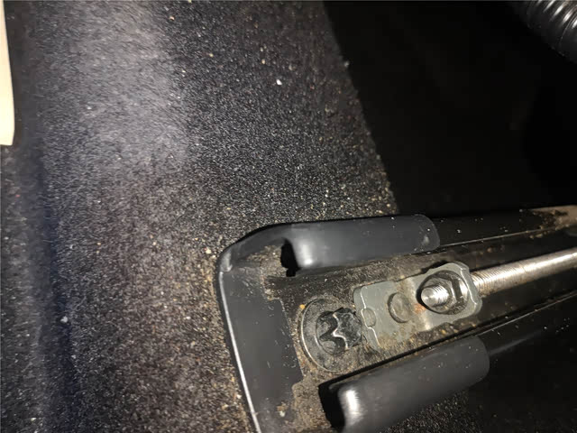 中央扶手的百合叶存在松动情况,看来是断裂了,估计要更换中央扶手才能解决这个问题了。内饰部分检查,就发现内饰存在老化现象。