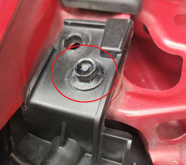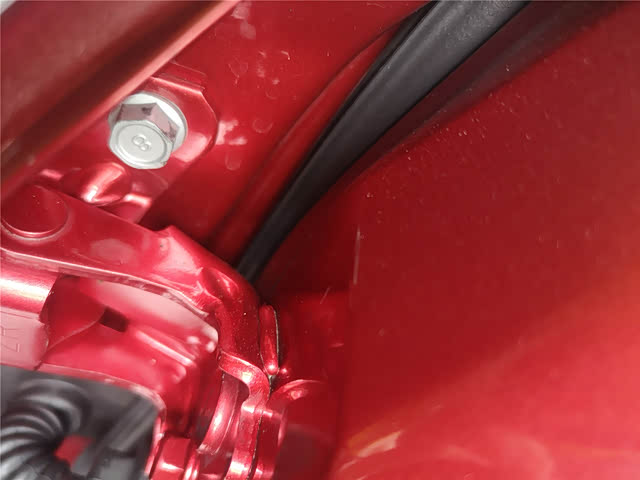 右后门也存在钣金现象,而且检查门螺钉的时候,发现了右后门存在拆装调整的情况,应该是钣金过后的调整。