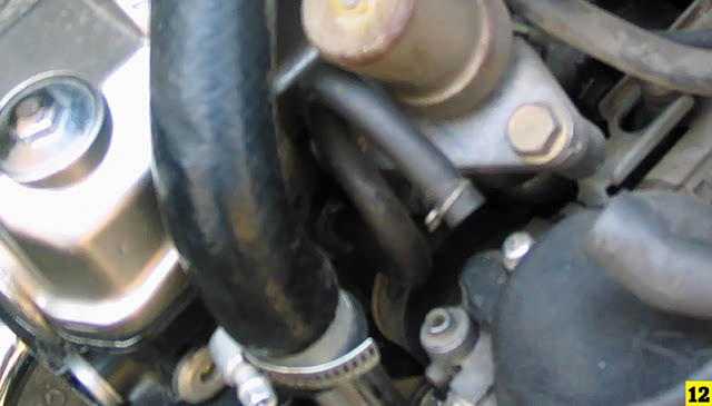 依次把二、三、四缸的进气道上的三个平衡调整螺丝拆卸下来,由于一缸本身上面就有一个负压管所以不用拆卸,如图12所示,那个负压管可以直接连接到四缸平衡表上。