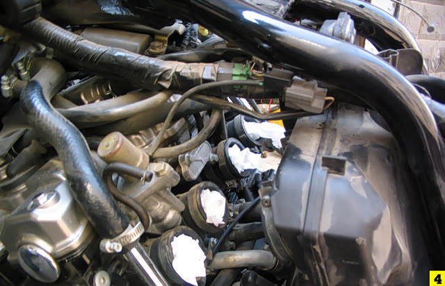 同时用干净的卫生纸把进气道接头堵住,防止异物进入气缸内引起新的故障,如图4所示。