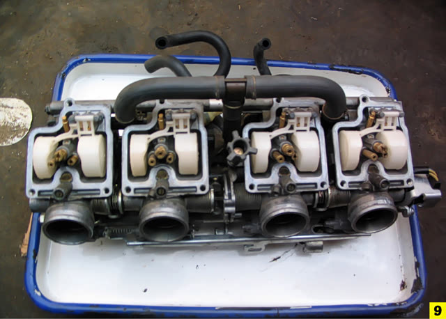 拆卸浮子室盖,检查浮子室内浮子的高度发现没有任何问题,如图9所示。
