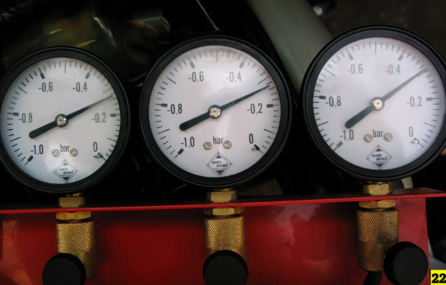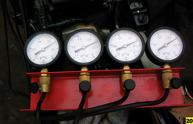 把平衡表上的调整阀门调整到正常范围时,发现一缸和四缸的负压值要大与二缸和三缸,如图20所示。