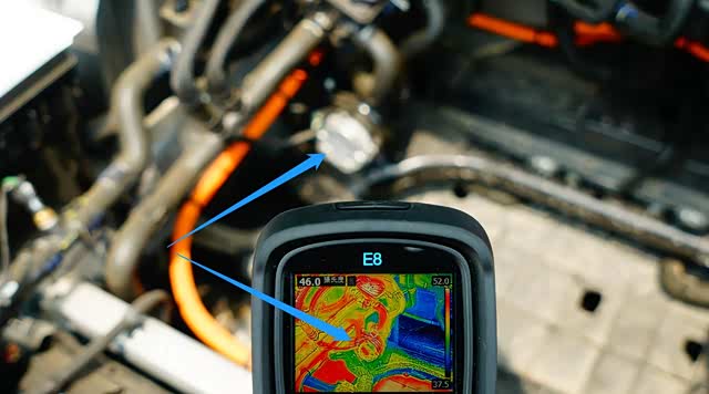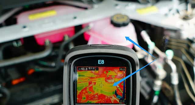 通过热成像仪检测到P7的冷却液补液壶表面温度为40.8摄氏度,综合充电功率和电芯温度(由充电桩显示)以及水冷板控制模块表面温度,动力电池高温散热功能没有激活。
