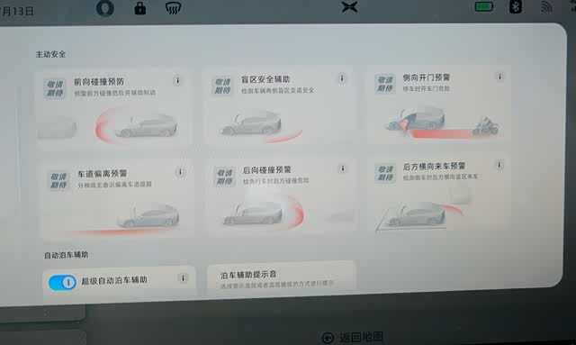 由于P7车载的诸多围绕主动安全的智能驾驶系统没有开通,要等待10月份之后才可以激活并根据车型配置不同获得不同行车安全配置。