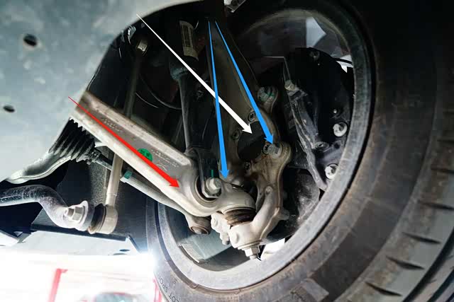 红色箭头:铝材质下悬架拉杆(2组)