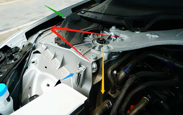 黄色箭头:铝材质减震器车身焊接固定组件