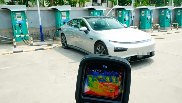 在室外温度32-34摄氏度午后,对P7在国家电网充电桩进行快充测试以及动力电池热管理系统高温散热策略观察。