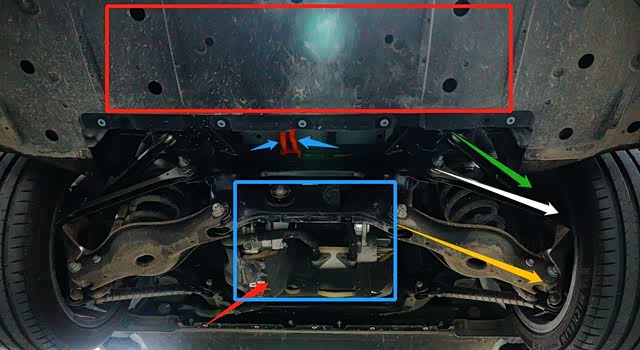 钢铝混接的车身、铝材质独立悬架和低摩擦系数的制动分泵,对于降低行驶电耗有着较为显著的作用。不过较低的车身(中置电池总成)离地间隙和已经存在动力电池下壳体软材质涂层击穿伤和划痕伤,还是需要驾驶员日常行驶保持更高的警惕避免拖底引发的安全事故。